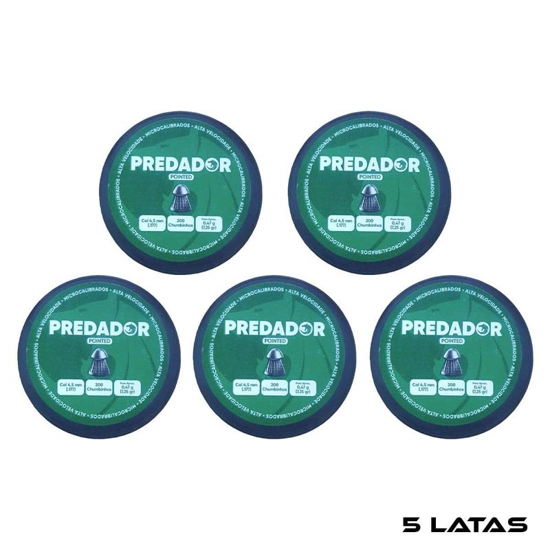 5 Latas de Chumbinho Predador Pointed 4.5mm .177 200un