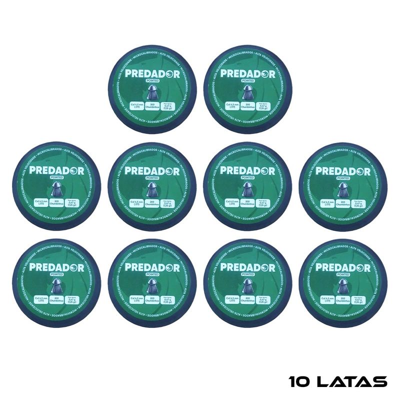 10 Latas de Chumbinho Predador Pointed 4.5mm .177 200un