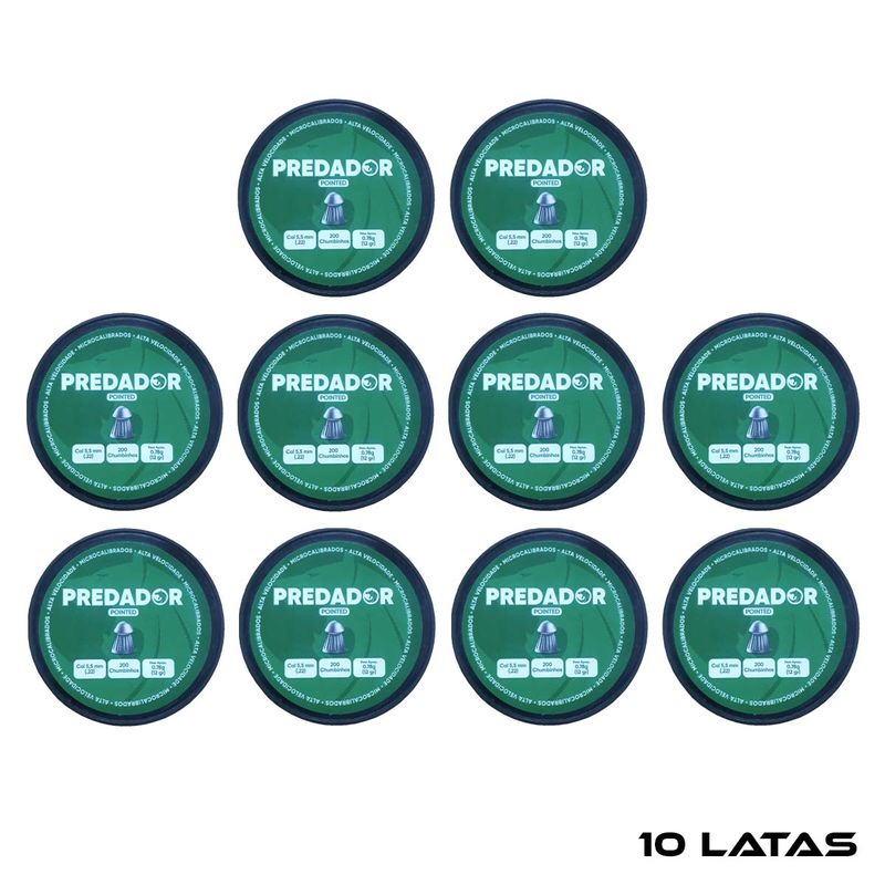 10 Latas de Chumbinho Predador Pointed 5.5mm .22 200un