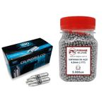Além disso, o kit acompanha 5.000 esferas de aço Prime Guns calibre 4,5mm (.177), com polimento extra e tratamento contra oxidação. Fabricadas em aço carbono com banho de cobre, proporcionam disparos mais precisos e seguros, com peso ideal de 0,36g por unidade.