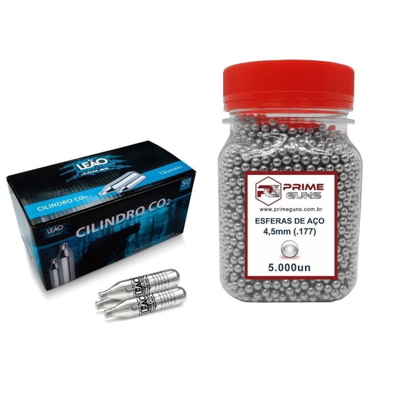 50 Cilindros de Co2 12g Leão + 5.000 Esferas de Aço 4,5mm