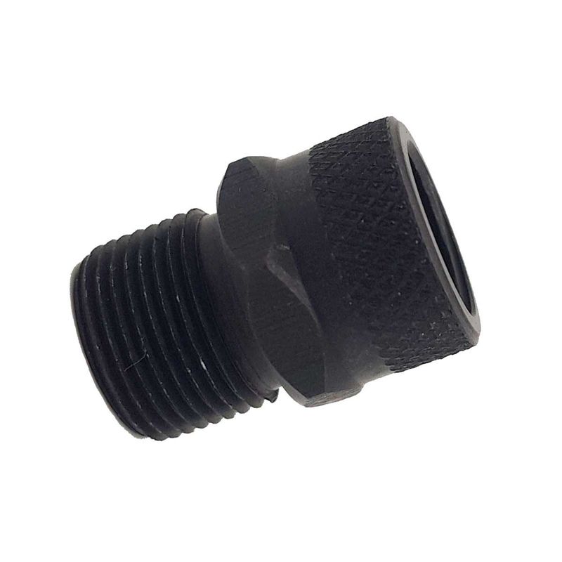 Se trata de uma peça que conecta o supressor com rosca padrão de 14mm na pistola com rosca externa de 12mm.