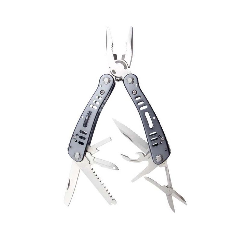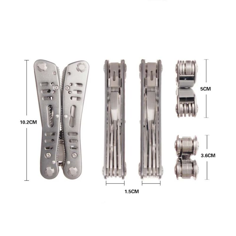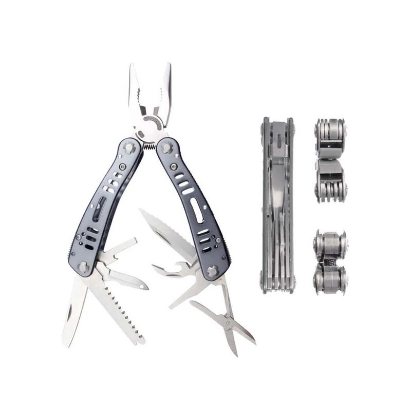 • Funções: Alicate (alicate Nipper, alicate padrão, cortador de fio de aço), Abridor de lata / garrafa, Lâmina de Borda Fina, Lâmina Serrilhada (Cordão Cortado), Lâmina Serrilhada (Serra de Madeira), Fresa de broca (com furo), Chave de fenda plana, Tesouras Afiadas