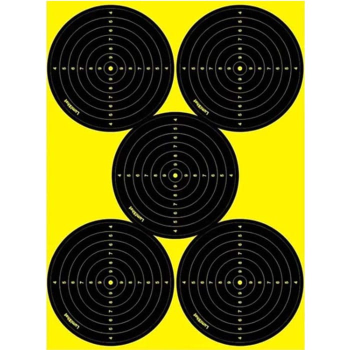 Cada folha vem com coladores de canto para facilitar o reparo! Esses alvos são ótimos para qualquer tipo de pistola de ar ou rifle de ar e em qualquer distância! Buracos de bala são revelados com anéis de marcação brilhantes para idetificação instantânea do tiro - não há necessidade de andar para até o alvo para detectar seu tiro.