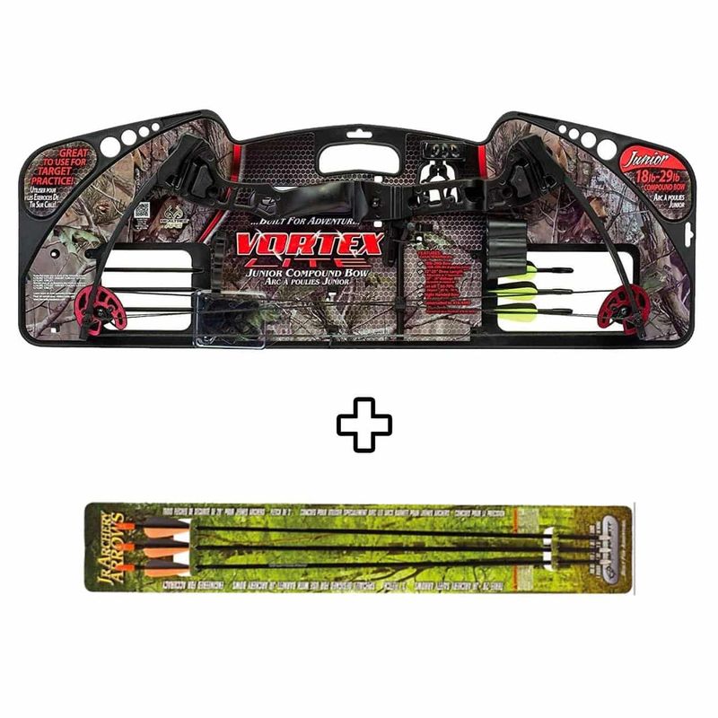 Não com a série Vortex de Barnett! Os pais (e suas carteiras) adoram os arcos Vortex por sua adaptabilidade. O Vortex Lite é um arco composto para pré-adolescentes ou adolescentes; projetado para crescer junto com os jovens arqueiros à medida que suas habilidades e estaturas avançam. O comprimento da puxada e o peso da puxada se ajustam com os módulos e instruções incluídos, e o próprio arco é equipado com todos os recursos de que precisam: câmeras duplas superdimensionadas, mira de fibra óptica de três pinos, três flechas de fibra de vidro, aljava de duas peças e muito mais. Além disso, eles vão se sentir bem com um arco enfeitado em Mossy Oak Break-Up Country, assim como mamãe e papai.