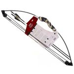 Os recursos adicionais incluem um descanso de flecha, roletes de dedo de toque suave e um pino de mira ajustável. Vem enfeitado com o novo envoltório de camuflagem Mossy Oak Bottomland para que as crianças sintam que estão praticando com um arco como mamãe e papai!