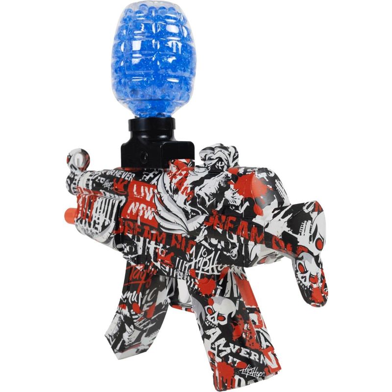 O rifle funciona com uma bateria de íon de lítio (Li-Ion 14500/500mAh 7,4V), que é inserida de maneira prática na empunhadura do produto. Seu design em vermelho com estampas dá um toque visual único, destacando-se entre outras opções do mercado. Ideal para recreação, o MP5 Toy GEL GUN é perfeito para jogos em ambientes abertos ou fechados, sendo uma opção segura para crianças e adultos.