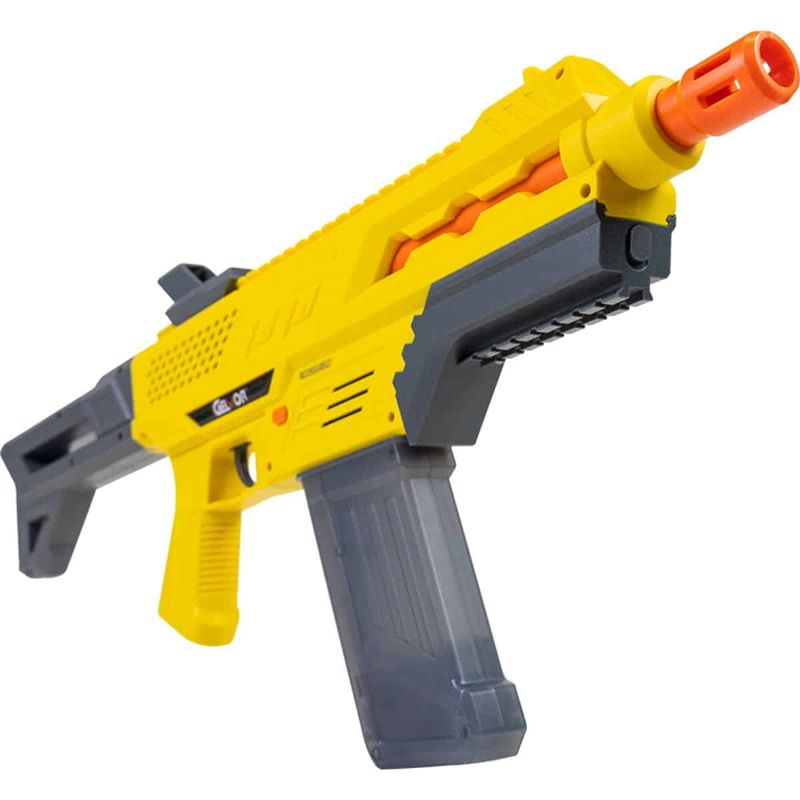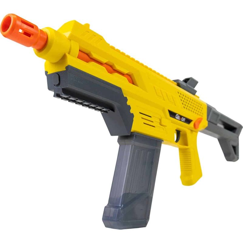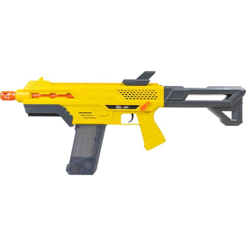 Atingindo uma velocidade máxima de 60 m/s (197 FPS), o Rifle Gelvor é capaz de disparar esferas de gel com grande precisão e alcance. Com 1,3 kg e 720 mm de comprimento, ele proporciona uma sensação realista ao ser manuseado, sem perder a leveza e resistência devido ao seu material em polímero de alta qualidade. A cor vibrante, amarelo e cinza, confere um visual moderno e diferenciado.