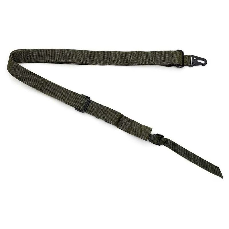 Seu sistema de ajuste permite a modificação rápida da posição da arma, sendo compatível com armas longas como M4, M15, M16, G36, MP5, HK 416, AR-15 e similares. A bandoleira é confeccionada em nylon, com partes em polímero e metal.