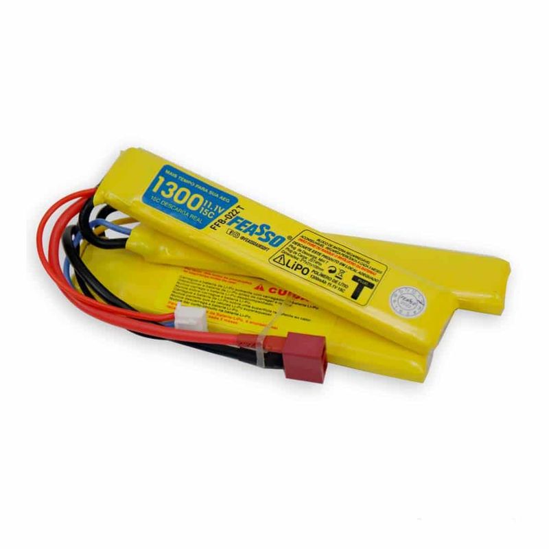A Bateria lítio dá muito mais força e energia para sua arma de airsoft elétrica (AEG) em relação as baterias convencionais tipo Life. Fabricada pela Feasso em Polímero de Lítio (LIPO) essa bateria FFB-022T possui 11.1 volts e 1300 mAh, com corrente de saída de 15C.