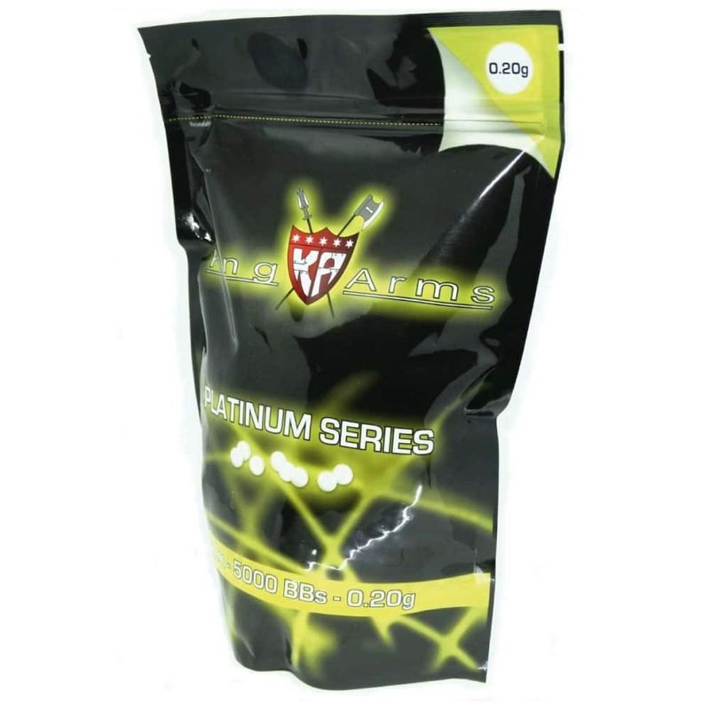 Extremamente polidas, as King Arms pesam 0,20g cada e possuem diâmetro de 5,95mm, com variação máxima de 0.01mm, diminuindo o risco de entupimento das esferas no cano e aumentando a precisão e são indicadas para armas de airsoft (AEG, AEP e GBB) com velocidade entre 200 e 380fps com essa gramatura de BB.
