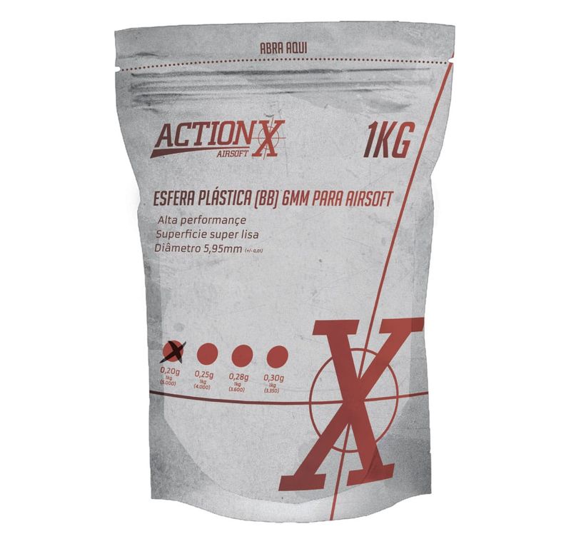 MUNIÇÃO DE AIRSOFT ACTIONX Esferas brancas de alto polimento. Possui pacote com zip lock, que permite transporte e armazenamento mesmo após o primeiro uso.