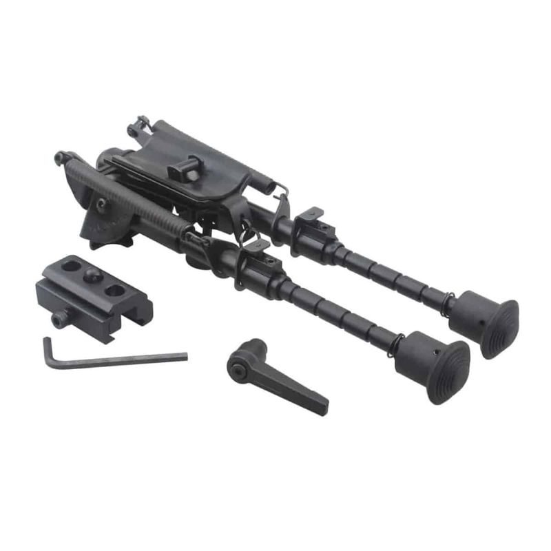 Fabricado totalmente em metal de alta resistência, conta com altura ajustável de 6 a 9 polegadas, com 6 níveis de regulagem, além de sistema giratório para melhor posicionamento da arma.