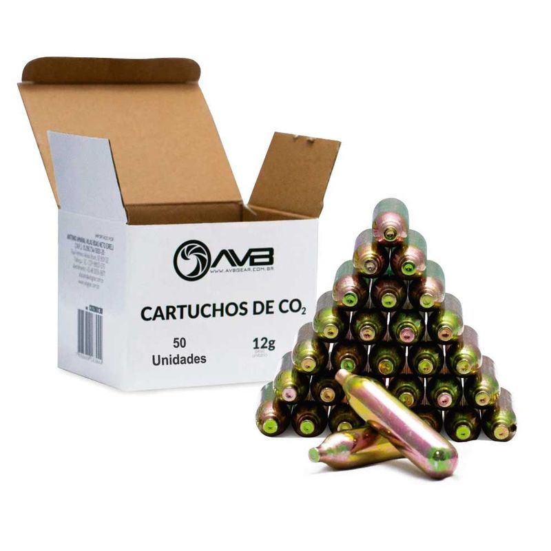 Caixa com 50 Cilindros Co2 12g AVB Airsoft e Airgun