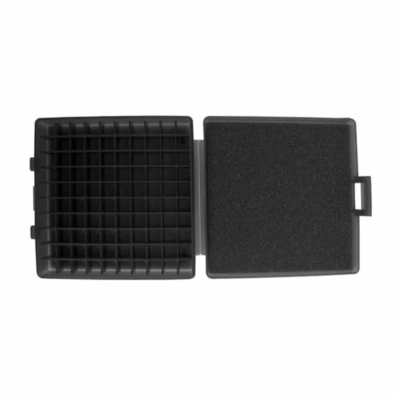 As caixas de cartuchos Shotgun possuem formato Slim e travas muito resistentes, com capacidade ampla para até100 cartuchos 9mm. Conta com espuma antirruído e antivibração, para dar mais segurança à sua carga.