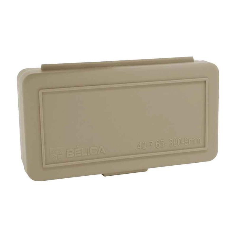 A Caixa de Munição da Bélica Militar, é produzida em polímero de alta resistência, possuindo fechamento de encaixe, articulação tipo dobradiça e espaço interno delimitado para cada calibre.