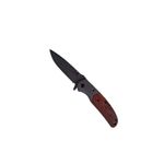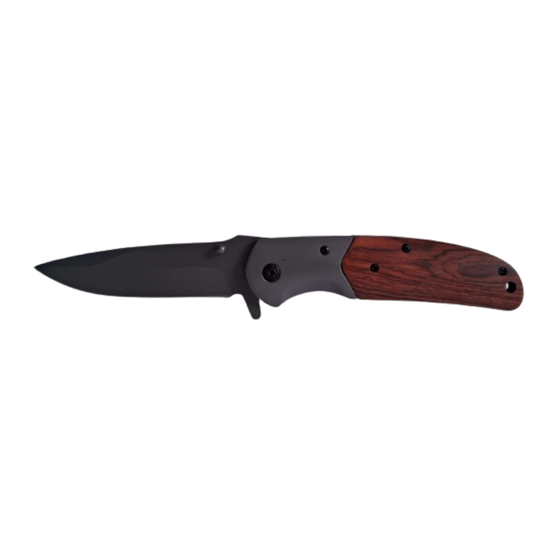 Sua lâmina de 10 cm em aço inoxidável, com formato Drop Point e espessura de 3 mm, proporciona cortes eficientes e alta durabilidade. O cabo em madeira, com 12 cm, garante pegada firme e confortável, mantendo o estilo rústico e funcional.