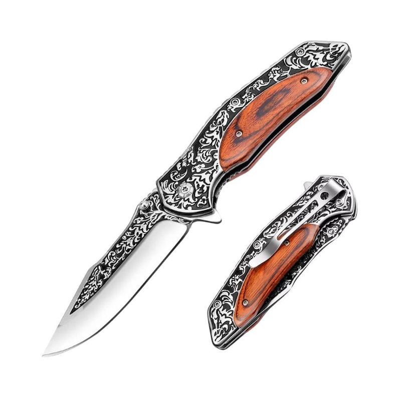 CutelariaDefesa PessoalCanivetesFacas e CanivetesCanivete Cabo de Madeira e Lâmina Trabalhada Cavaleiro