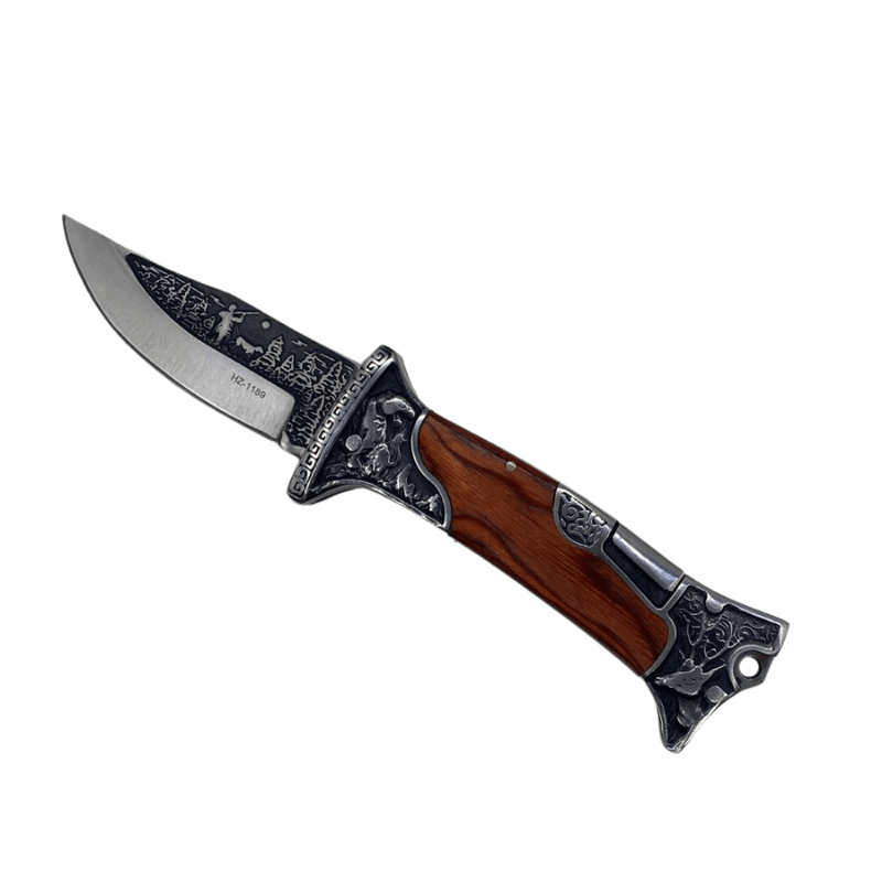 O Canivete Tático Country é uma peça robusta, prática e cheia de estilo, ideal para quem valoriza funcionalidade e um design clássico. Fabricado com materiais de alta qualidade, combina lâmina em aço 440C com cabo de madeira trabalhada, oferecendo durabilidade e visual marcante.
