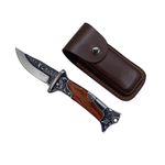 • Características: Lâmina 440C anodizada, Clip de bolso, Cabo em madeira, Bainha em couro, Abertura manual, Estilo country