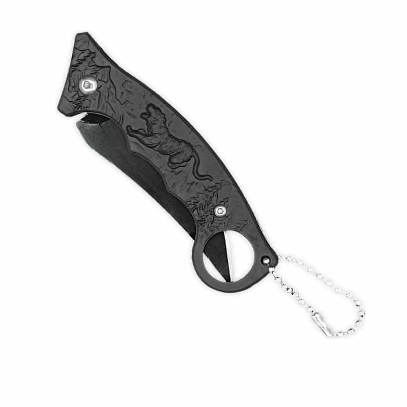 ###Canivete Esportivo de Bolso Inox Preto Retrátil – Detalhe no Cabo
