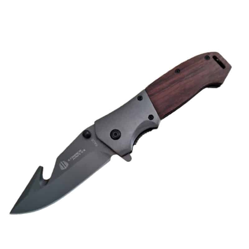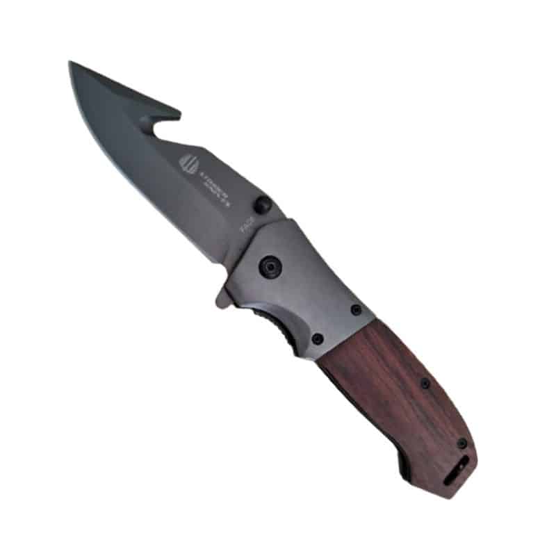 Projetado para atender usuários exigentes — desde aventureiros até profissionais de segurança — o canivete combina design robusto com um visual clássico, graças ao seu cabo híbrido em metal e madeira, que proporciona uma pegada ergonômica e firme. O clip de bolso garante transporte seguro e acesso rápido sempre que necessário.