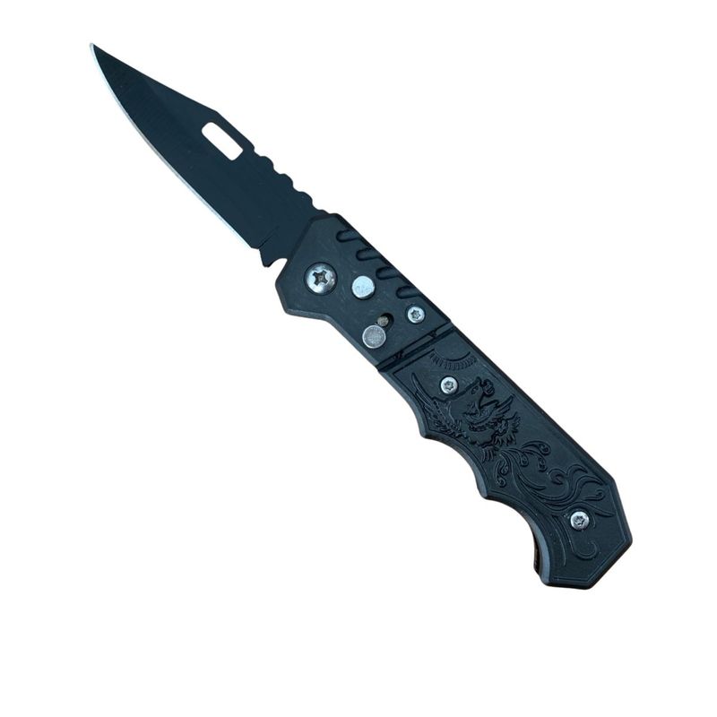 Canivete Tático de Abertura Lateral com detalhe Fênix no cabo