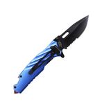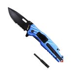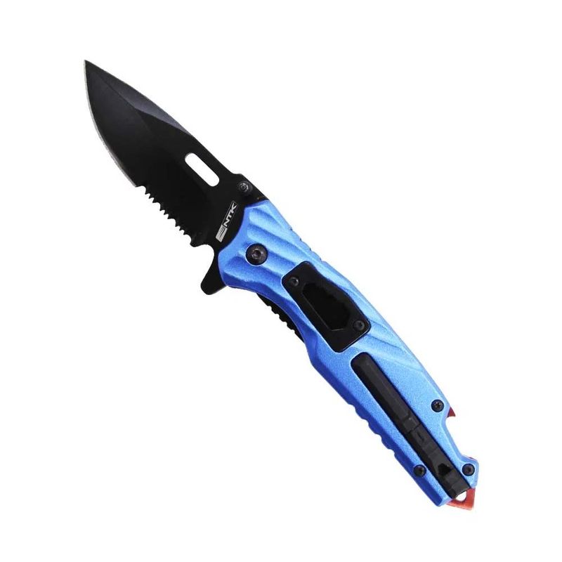Seu acabamento fosco na cor azul, é ideal para que preza por um material único de cutelaria. Vem com lâmina fabricado em aço inox 420 de alta durabilidade e ótima afiação na cor preta, que possui também serra para determinados cortes.