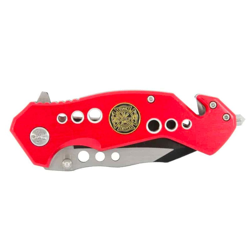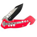 Este modelo, muito utilizado por equipes de resgate e bombeiros, apresenta um cabo vermelho distintivo para fácil identificação. Feito de aço inoxidável e aço escovado, é resistente e possui uma lâmina preta, garantindo sua exclusividade.