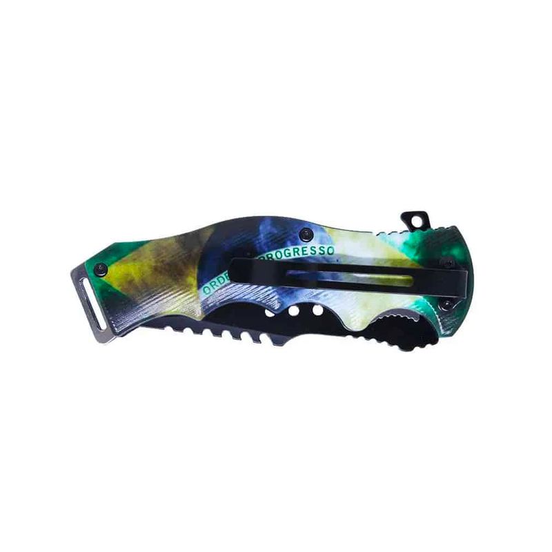 O Canivete TAG Patriota é uma homenagem à bandeira do Brasil, combinando estilo e funcionalidade em um design único.