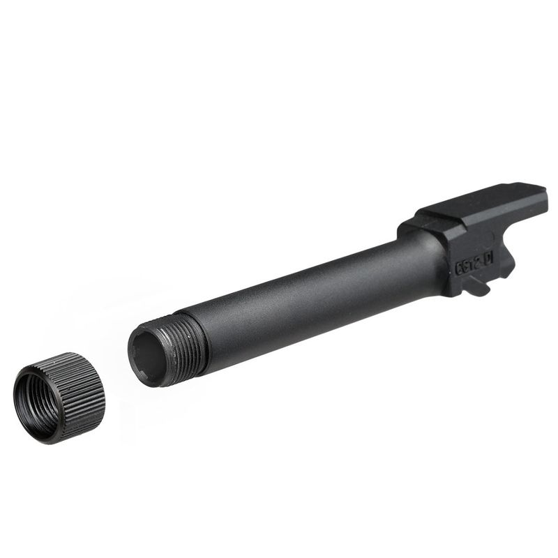 Cano externo com rosca e tampa removível para upgrade estético e funcional da pistola CZ P-10C. Tanto o cano quanto a tampa são construídos em metal resistente e utilizam rosca padrão 14 mm CCW, garantindo encaixe firme e seguro.