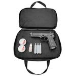 A capa com espuma ainda conta com dois bolsos externos, para acomodação de munições, acessórios, cilindros ou chumbinhos sem o contato direto destes itens com as armas.