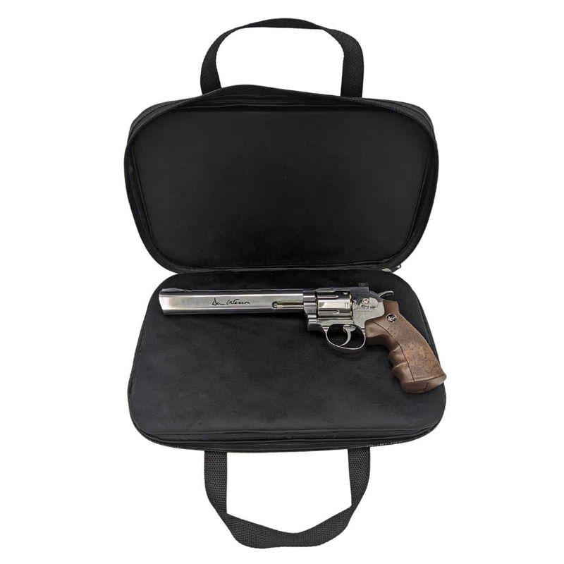 A Capa de Couro com espuma Prime Guns é um estojo de tecido com forro interno de espuma de 2cm reforçada e com revestimento interno aveludado, próprio para armazenar e transportar até 2 armas curtas com cano de até 8 polegadas, sendo compatível com praticamente todas as pistolas e revólveres disponíveis.
