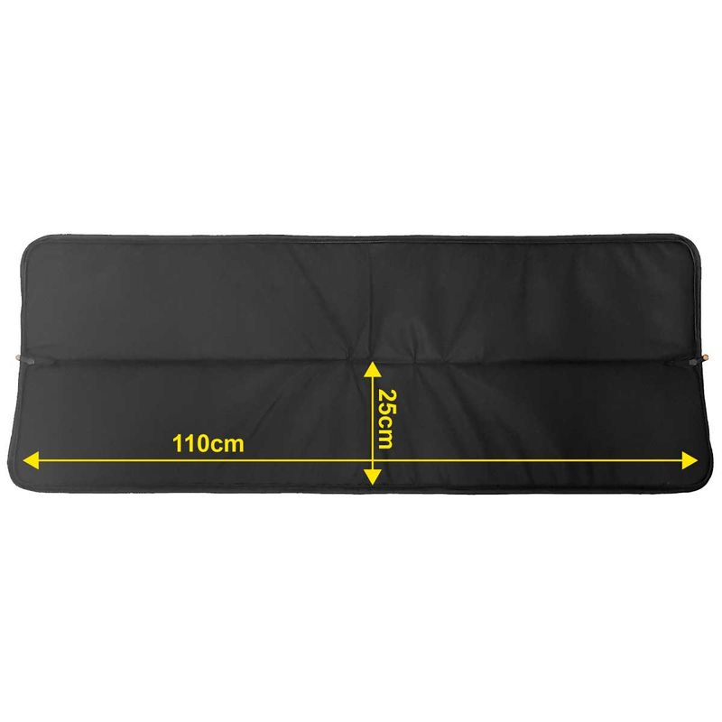 A capa possui 110cm de comprimento e 25cm de largura, acoplando tranquilamente duas armas médias ou 1 arma longa, sendo compatível com praticamente com todas as carabinas de pressão comercializadas no Brasil.