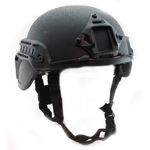 Um capacete militar tático preto é um equipamento de proteção individual utilizado por forças militares e policiais, bem como por entusiastas de atividades ao ar livre, como airsoft e paintball. O capacete é projetado para oferecer proteção contra impactos e ferimentos na cabeça durante operações táticas e missões críticas.