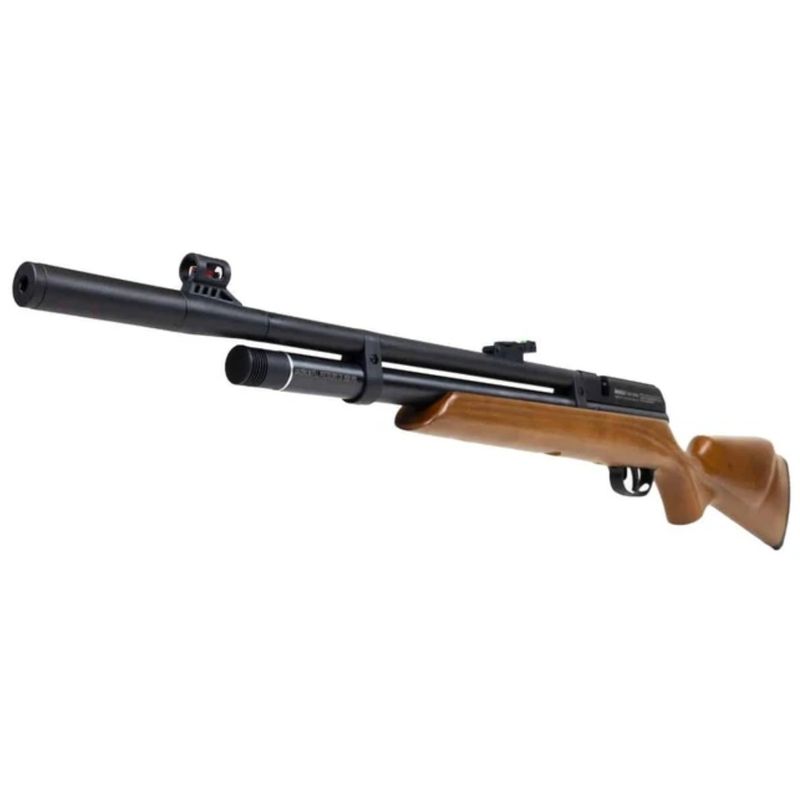 Construída em madeira nobre com acabamento refinado e toque liso, a Beeman Raider combina elegância e ergonomia, garantindo uma empunhadura firme e confortável. Seu design ambidestro permite uso confortável tanto para destros quanto canhotos, enquanto o cano metálico de 490 mm e a alma raiada asseguram agrupamentos consistentes e excelente precisão.