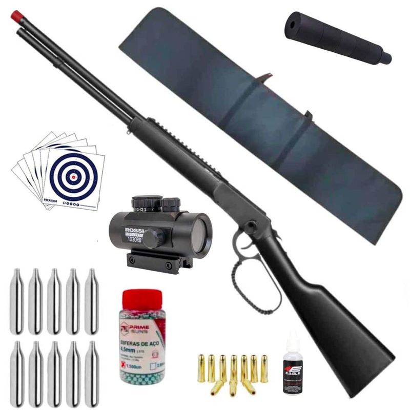 + Capa Estofada + 1.500 Esferas 4,5mm + 10 Co2 12g + Alvos + Red Dot + Óleo de Silicone + Supressor Funcional