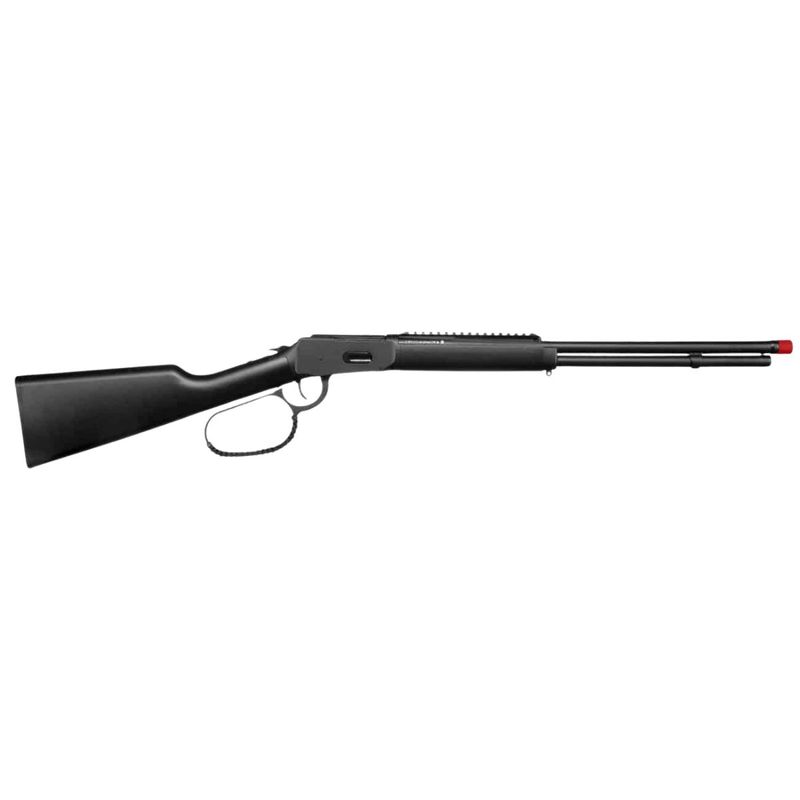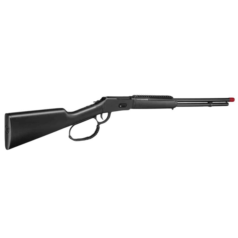 A carabina de CO2 Legends Cowboy Rifle Renegade combina o design clássico de uma lenda americana com a moderna tecnologia de CO2. O Renegade vem completamente em preto, com um receptor de metal completo e um estoque de plástico em uma aparência de madeira escura. O fuzil de cowboy tático tem uma rosca silenciadora UNF de 1/2" no cano, um trilho Picatinny de 22 mm para óptica e uma grande alavanca de repetição envolta em paracord.