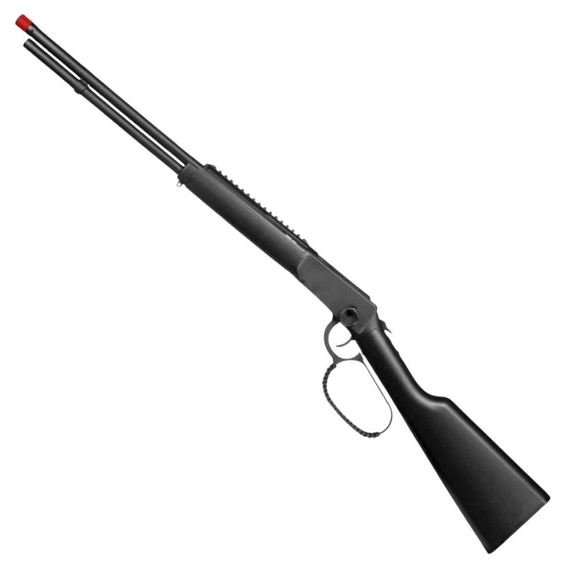 Construída em metal de alta resistência com coronha em polímero estilo madeira escura, essa carabina reproduz fielmente a ação das lendárias Winchester e Rossi Puma, oferecendo ejeção realista de cartuchos (shell ejecting) e alimentação por duas cápsulas de CO2 12g, garantindo precisão e potência nos disparos com esferas de aço 4,5mm.