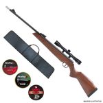 A Carabina Cometa Fusion Madeira 5,5mm + Chumbinhos+ Luneta + Capa dispara no modo Um a um com velocidade de 1000fps - 305m/s e energia de 26 Joules Ver mais