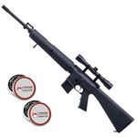 + 125 Chumbinhos Rifle STR + 125 Chumbinhos Gamo MatchA Espingarda Crosman MTR-77 é uma carabina moderna, forte, precisa e bonita. Desenhada em cima do projeto da Colt M16, a MTR-77 já acompanha luneta 4x32 e possui sistema de pistão nitro (gás ram).
