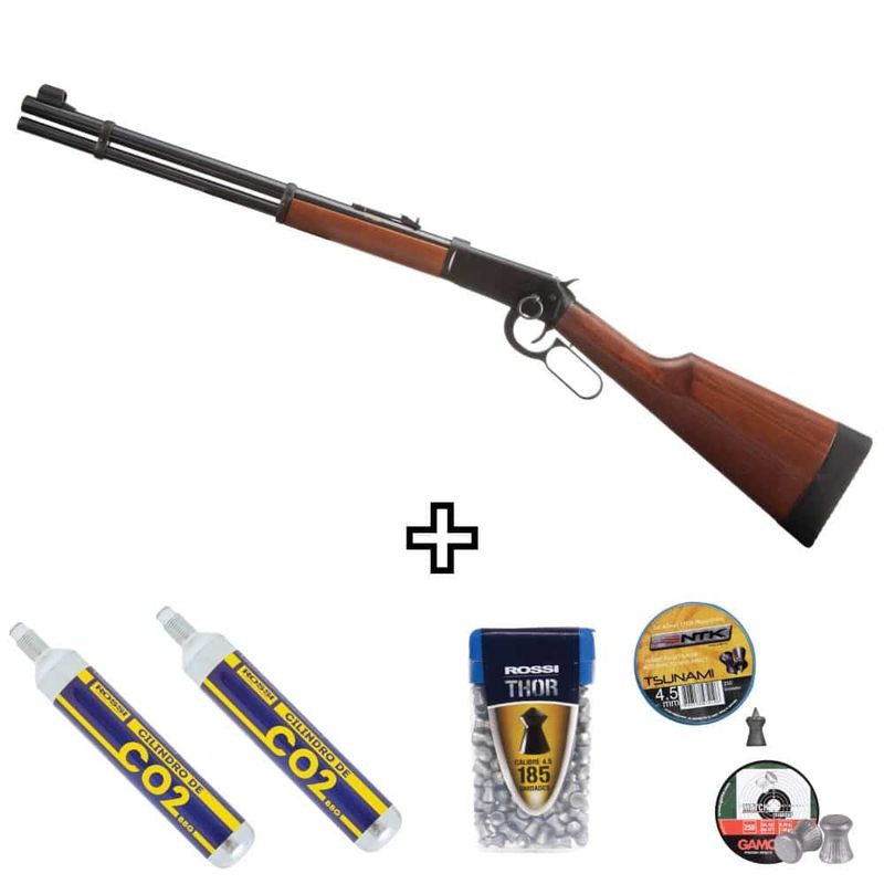 A Carabina de Chumbinho Walther Lever Action Co2 4,5mm Kit dispara no modo Repetição (Lever Action) com velocidade de 600fps - 183m/s e energia de 7,5 Joules Ver mais