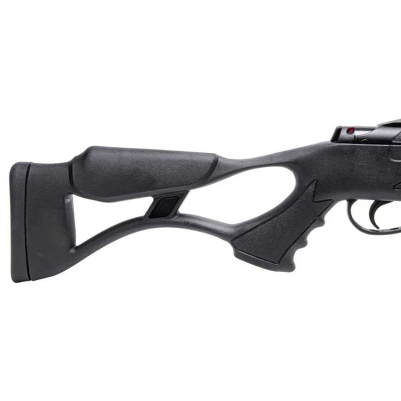 A soleira emborrachada contribui para absorção do recuo, aumentando o conforto durante sessões prolongadas de tiro. O gatilho ajustável permite personalizar a sensibilidade conforme a preferência do usuário.