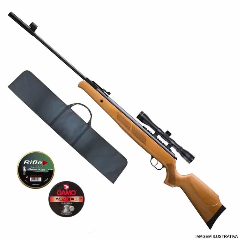 + 125  Chumbinhos Rifle STR + 125 Chumbinhos Gamo Match + Capa com estofamento + Luneta 4x32 Poly