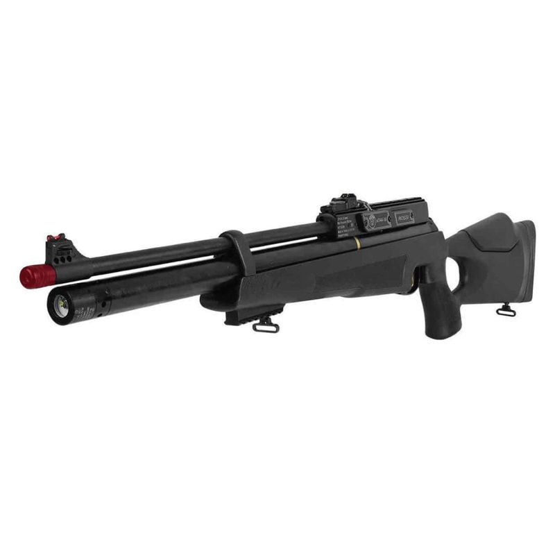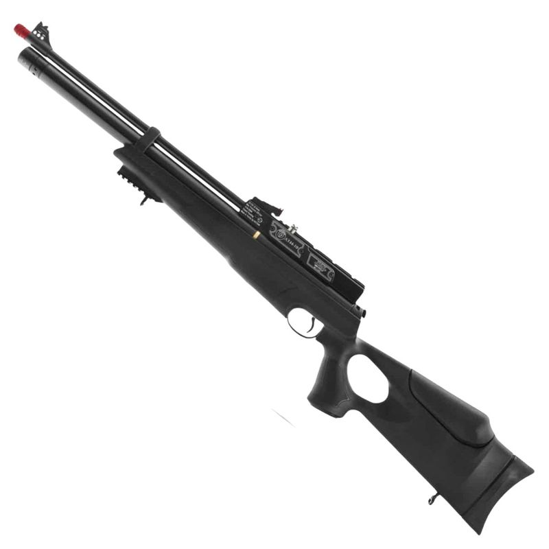Com pressão máxima de 200 BAR (2900 psi) e autonomia de até 40 disparos, a carabina ainda conta com manômetro embutido para controle de pressão e um cano de 495mm com alma raiada, garantindo precisão em todos os tiros.