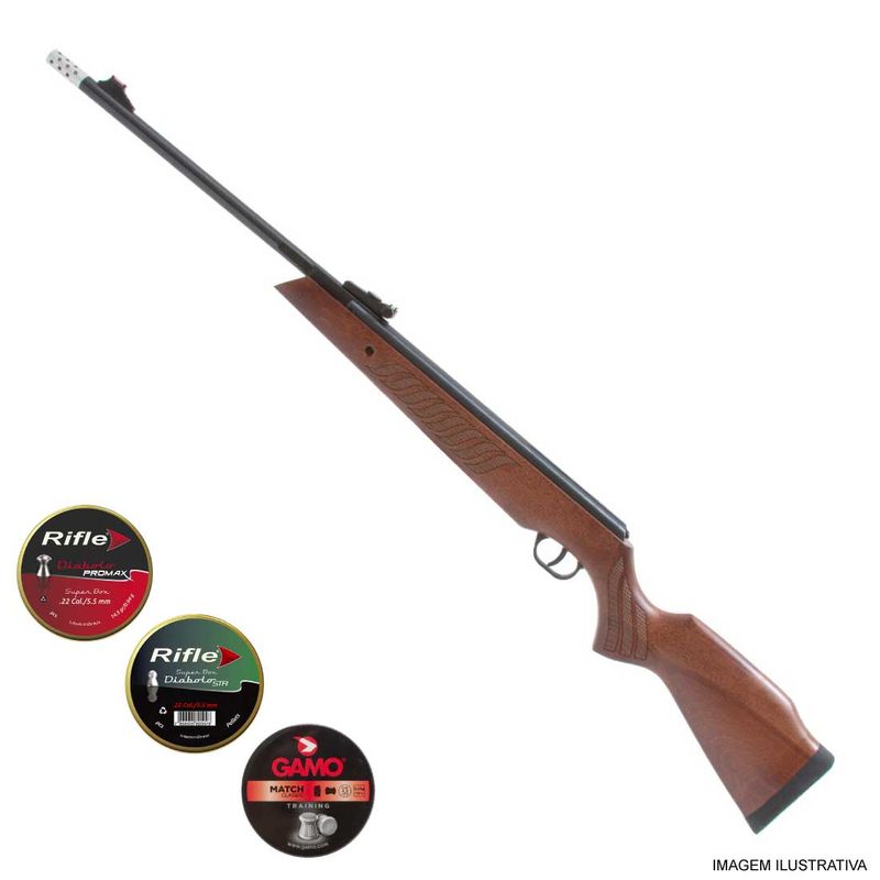 + 125 Chumbinhos Rifle STR 5,5mm .22 + 250 Chumbinhos Rifle ProMax 5,5mm .22 + 125 Chumbinhos Gamo Match 5,5mm .22