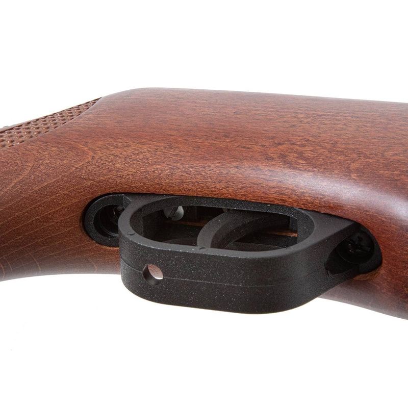 Sua coronha em madeira de nogueira ambidestra, no estilo Monte Carlo, oferece não apenas conforto e ergonomia, mas também um acabamento refinado com padrão de madeira único.