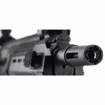 Vários acessórios podem ser montados nos vários trilhos de 22mm como lunetas e red dot, além da opção de colocar miras laser e lanternas táticas nos trilhos laterais. O cano de aço raiado dentro do rifle garante uma precisão muito boa ao atirar.