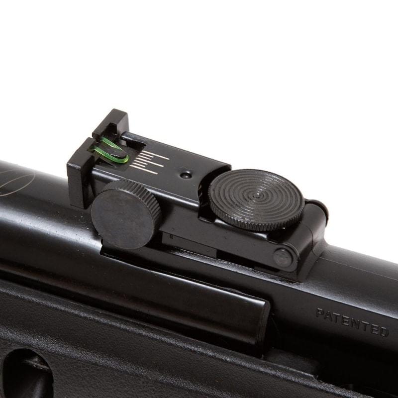 Seu conjunto de mira é outro show à parte. A massa em túnel e alça de mira são feitas de fibra óptica fina, tornando-a uma arma incrível para tiro de mira aberta. A alça de mira possui ajuste milimétrico.