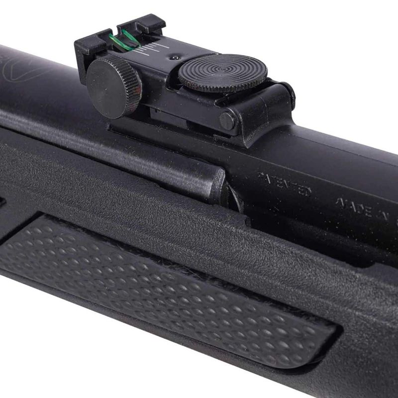 Recursos de Mira e Adaptabilidade Óptica: A alça de mira e a massa de mira são ajustáveis milimetricamente, oferecendo controle preciso. O trilho de 20mm no corpo da carabina, com adaptador para trilho elevado de 11mm, facilita a instalação de equipamentos ópticos, como lunetas e red dots, sendo compatível com uma variedade de modelos.